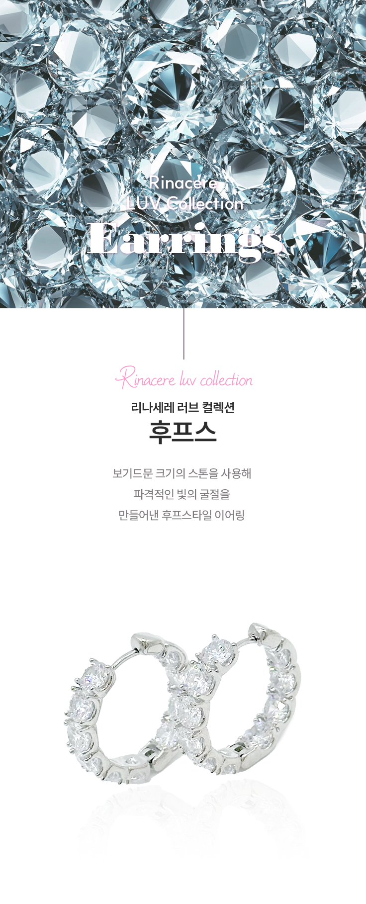 보기드문 크기의 스톤을 사용해 파격적인 빛의 굴절을 만들어낸 후프스타일 이어링