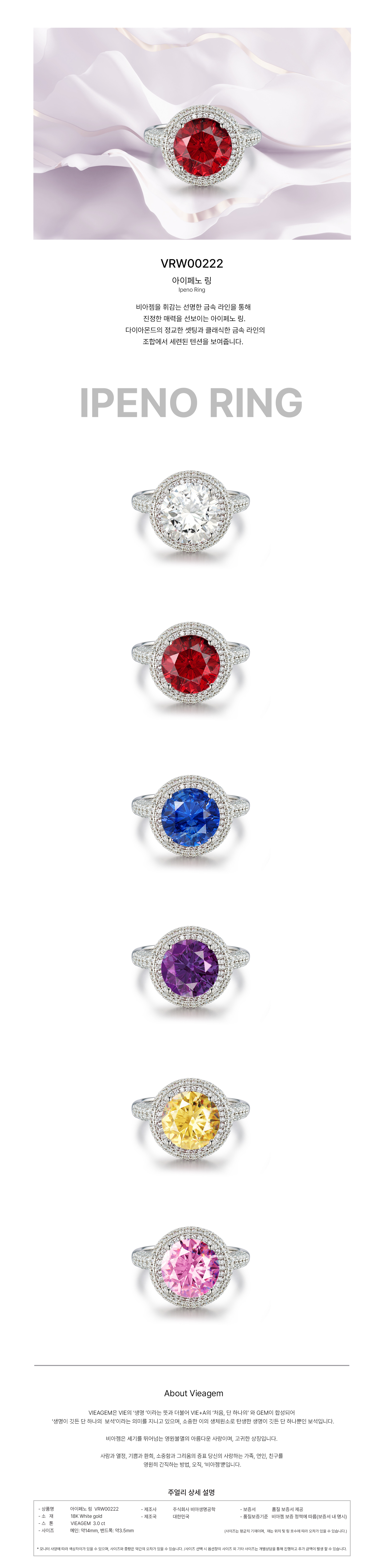가격 별도 문의/ 아이페노 비아젬 3ct, 라운드 컷